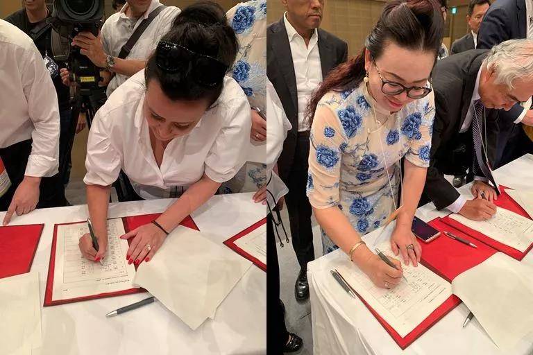 参加论坛的各国代表在《淡路岛宣言》上签字