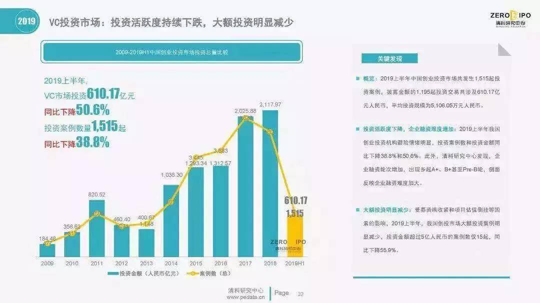 数据显示:2019上半年VC市场募资893.27亿元,同比下降49.6%。投资人出手越来越谨慎,2019上半年VC市场投资610.17亿元,同比下降50.6%;投资案例数量1515起,同比下降38.8%。此外,企业融资轮次增加,出现了多起A+、B+甚至Pre-B轮融资,侧面反映企业融资难度加大。资本家里也没有余粮啊。