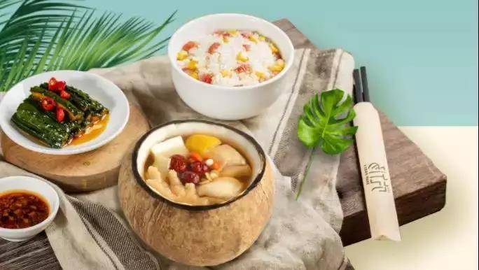 主打“原只椰子炖汤”,必须是养足120天的走地鸡与原只椰子共同熬制,在中央厨房制作完成后,采用热链运输到线下门店。