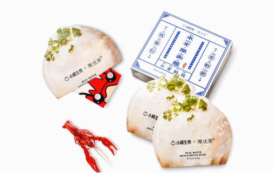 2019年夏天,联合国民彩妆品牌稚优泉推出小龙虾面膜、小龙虾色唇釉。购买小龙虾生煎即可获得联名化妆品。