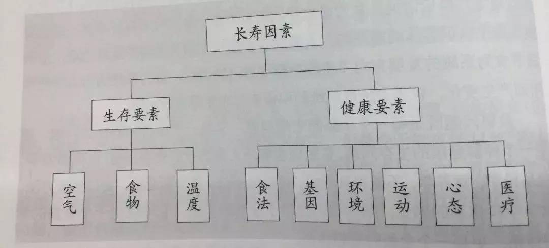 让我们来具体分析一下,众所周知,长寿需要两个方面的支撑:生存要素和健康要素。