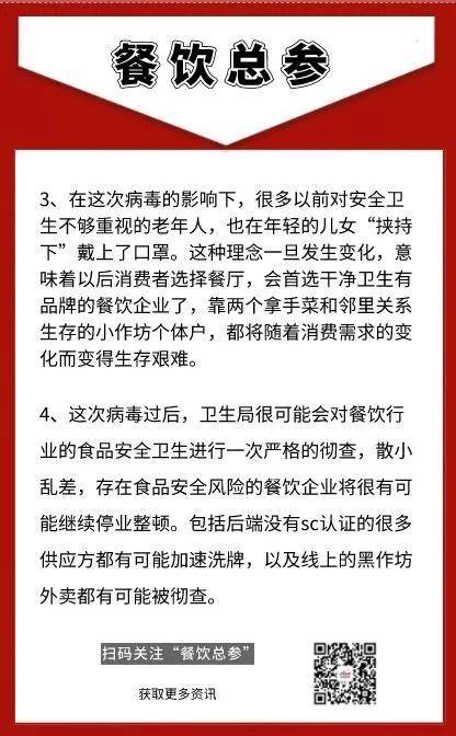 综上所述,2020年的餐饮是两极分化,“单店餐饮”和“连锁餐饮”,是加速洗牌的一年,是食品安全卫生重建的一年。