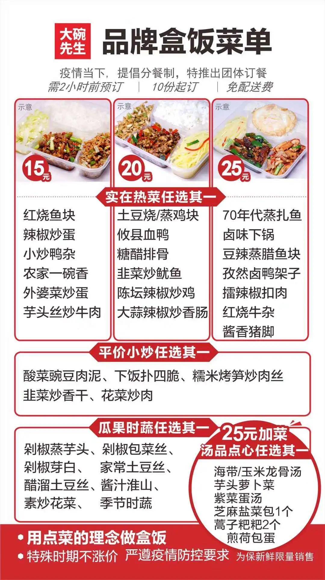 疫情形势依然严峻,但是已经有不少企业复工,工作时可以佩戴口罩防护,但是吃饭怎么办?避免感染,考虑到当前众多企业单位和居家人群的就餐难题,不少餐饮行业协会已经开始呼吁餐饮企业进行分餐制。我们采访到拥有16年餐饮品牌的湖南大碗先生,率先推出分餐制,用“点菜的理念做盒饭”,并根据团餐订餐标准设置菜品种类和价格,成为本地疫情防控平价配餐的保障品牌。