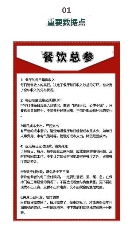 越来越多的餐企开始复工,餐饮的“春天”也即将到来。作为餐厅的总负责人,餐饮老板们必须关注好6个数据点和3个成本警戒线,才能快速恢复,越来越好。