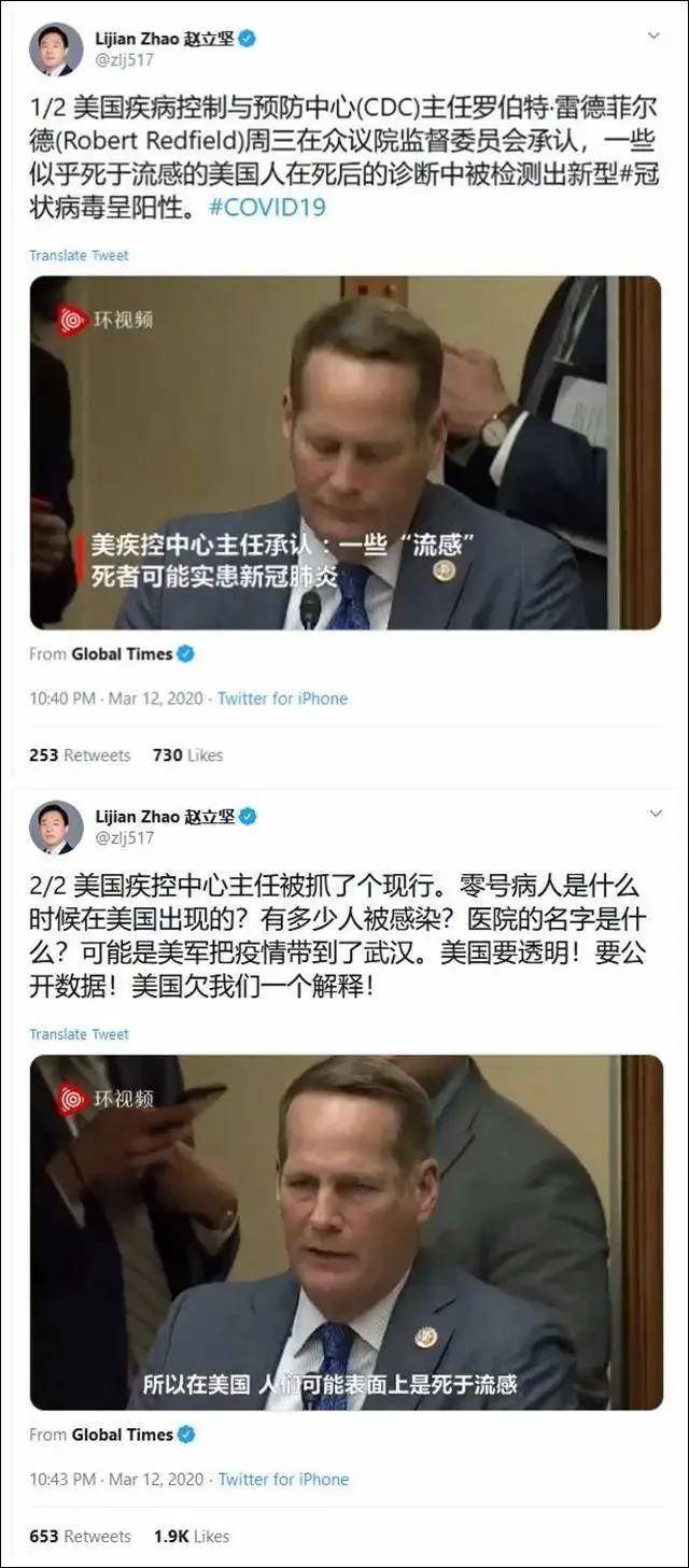我国外交部发言人赵立坚的推文:欠我们一个解释