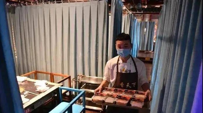 该店3月1日起正式复工,起初同众多火锅店一样,采用了“隔桌用餐”的形式。“为了让顾客用餐更加安心、更加放心,同时也为了增加大厅利用率,我们想出了使用围帘的办法。”该店店长周芩说道。