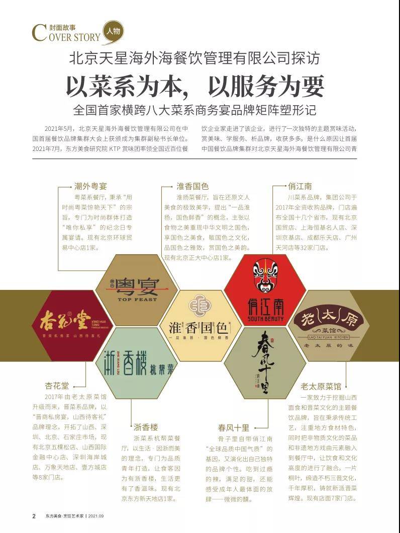 新的一期杂志增加了“中餐优秀品牌”专栏,并在封面位置专访了北京天星海外海餐饮管理有限公司的两位老总,深度揭秘他们是如何以34菜系定位不同的品牌,如何塑形高端商务宴品牌矩阵的?!