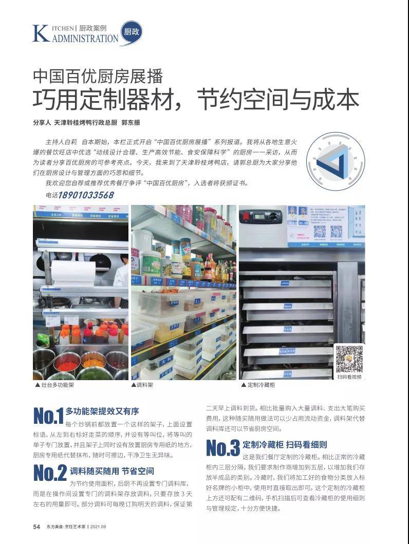 自本期始,本栏正式开启“中国百优厨房展播”系列报道。将从各地生意火爆的餐饮旺店中优选“动线设计合理、生产高效节能、食安保障科学”的厨房一一采访。本期,我们走进了天津聆桂烤鸭店的厨房一探究竟。