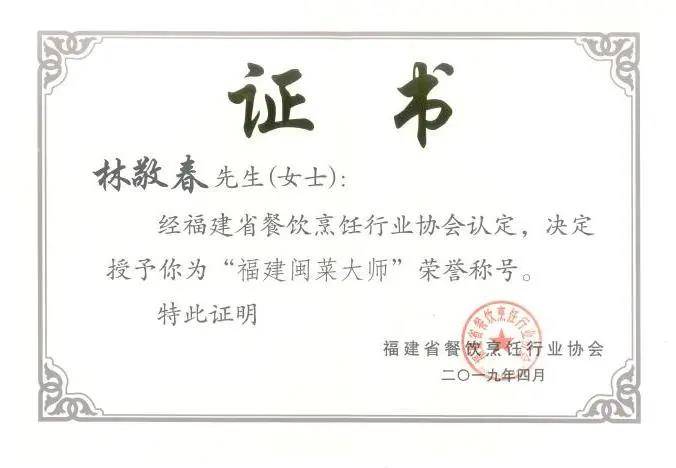 23年来,他曾受聘于多家星级酒店担任行政总厨,长期担任高等院校烹调专业教师。精心钻研闽菜烹调技艺,从学徒以来一直都积极热爱这个行业,积极投入到烹饪行业中。2019年4月,被福建省餐饮烹饪行业协会授予“福建闽菜大师”荣誉;2019年8月,获中式烹调师一级/高级技师;2020年评福州林敬春技能大师工作室。他就是青年烹饪艺术家林敬春。