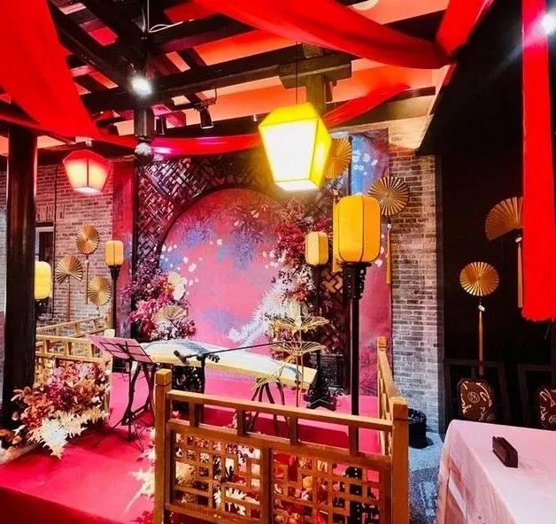 门口有几位身着红色汉服翩翩起舞的小姐姐。场面显得非常热闹。