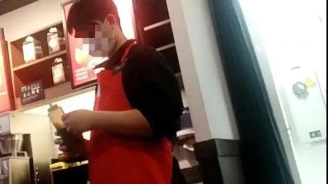 在星巴克无锡震泽路店,一名店员正在篡改保质期信息,把旧标签撕下,贴上了新标签,原来是要过期的抹茶液被人为地延长了保质期。
