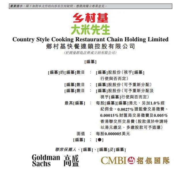 1月25日,乡村基快餐连锁控股有限公司正式向港交所递交招股说明书,高盛和招银国际担任联席保荐人。