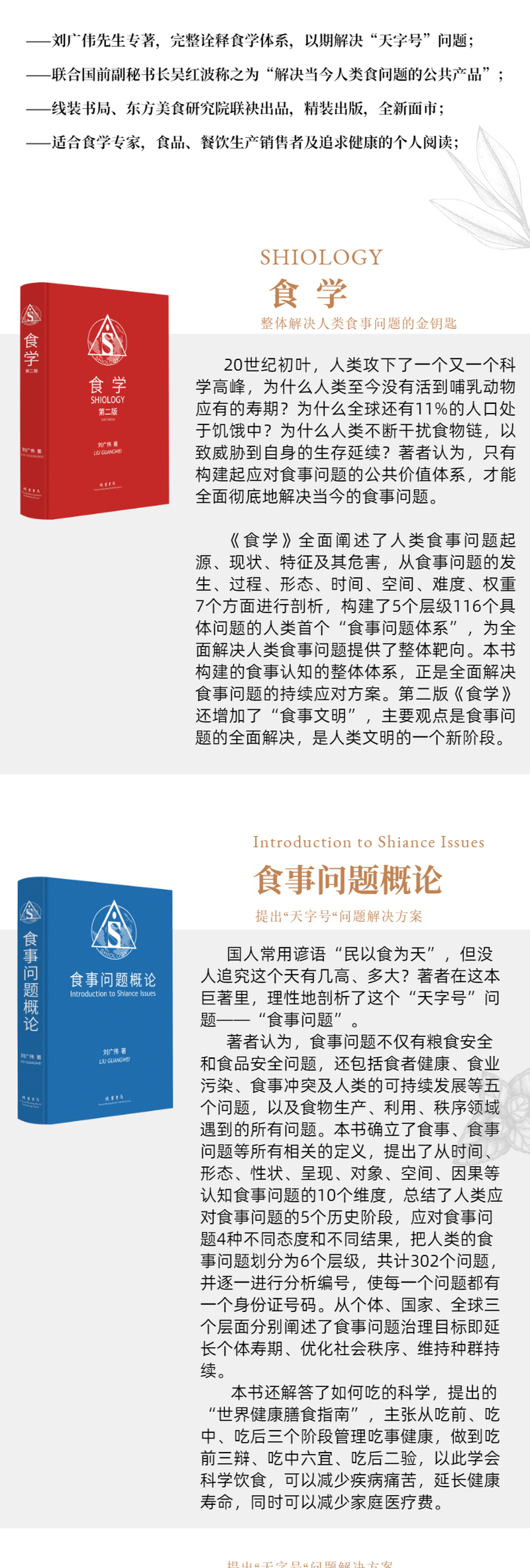 全集四册,共计307.2万字,2558页;订价800元,虎年春节始,限量订售。适合食事问题专家、学者、官员,食品、餐饮生产销售者及追求健康的个人阅读 订阅咨询:18901061779(同微信)