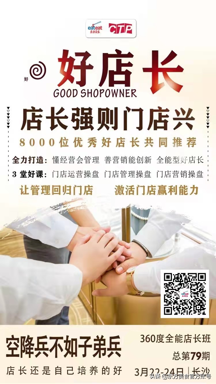 店长强则门店兴,第79期360度全能店长班将于3.22-24日长沙开班,如果你苦于不知道如何带团队,或者希望能够加速提高门店赢利能力,可以带队现场学习。(扫码报名)