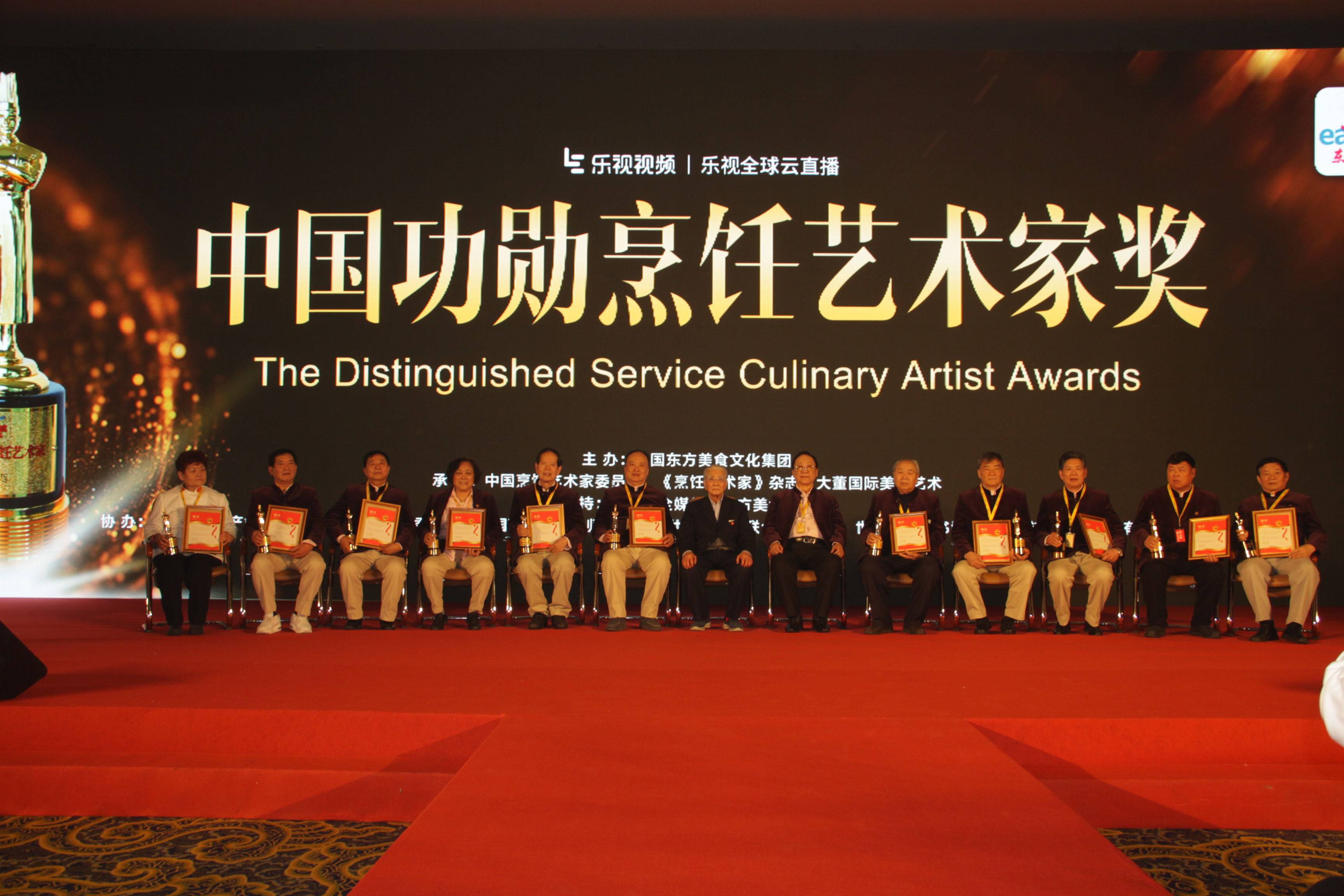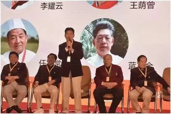 蓝其金先生参加第三届中国烹饪艺术家年会,并发表演讲。蓝其金先生(右三)被评为东方美食中国功勋烹饪艺术家。