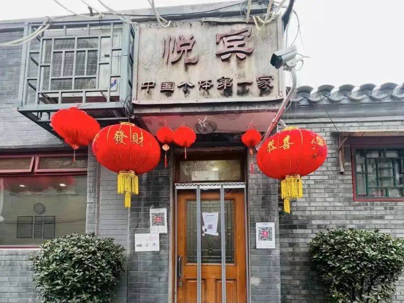 从北京市东城区五四大街拐进翠花胡同,有一家悦宾饭馆非常知名,成立于1980年,创办人是郭培基、刘桂仙夫妇,是改革开放后北京第一家个体经营餐馆。翠花胡同呈T字形,地理位置很特别,横向往东连着王府井大街,竖向北是五四大街,斜对面是中国美术馆。目前,悦宾饭馆门上挂着的一块“悦宾中国个体第一家”老旧的招牌,依然有着历史的痕迹。招牌菜有蒜泥肘子、五丝桶、锅烧鸭、面筋塌白菜等。