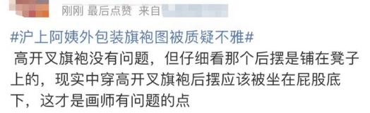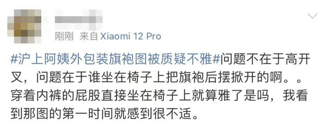 这次,沪上阿姨在设计上确实有纰漏,女性都知道旗袍没问题,不过撩起旗袍贴肉坐真的很不雅,并且对个人卫生也非常不好。