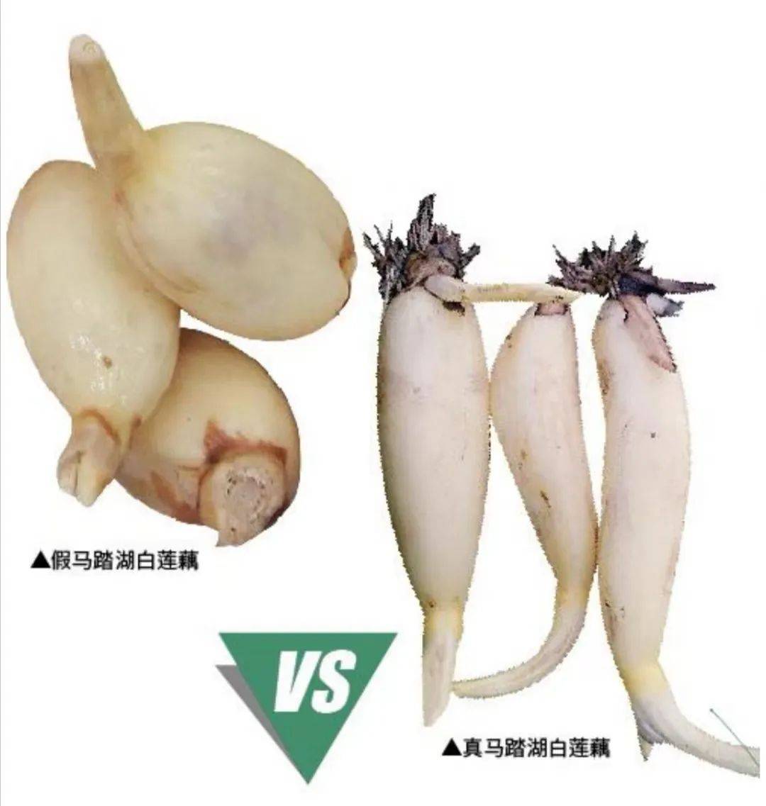 与普通藕相比,马踏湖白莲藕更加细长洁白,外表嫩、有光泽,放在手里掂量时,质量比其他的藕要轻一些,掰开后没有藕丝。
