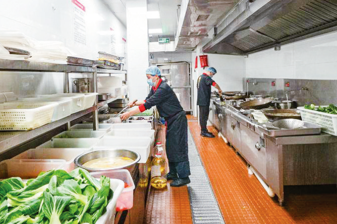 其一, 9:30-11:30 和17:00-17:30 这两个时间段,要固定检查各岗位预备的食材、调料、预制菜等是否完成。其二,高峰出菜间要重视出品质量。俗话说“萝卜快了不洗泥”, 这个时间段的工作属于高速运转期,侧重点主要看菜品的出品质量,以免因菜质问题出现退菜、投诉等问题。另外,总厨还需留意部门各岗位间的协同作战能力,以高效出菜为唯一目标。