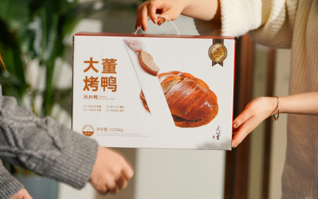 举个例子,比如全聚德的烤鸭礼盒和大董的董粽系列礼盒,这些都是非常有知名度和品牌信誉度的企业提供的外带产品,这类产品中蕴含了一些地域性、秘制性烹饪手法,所以比较适合做成外带产品。