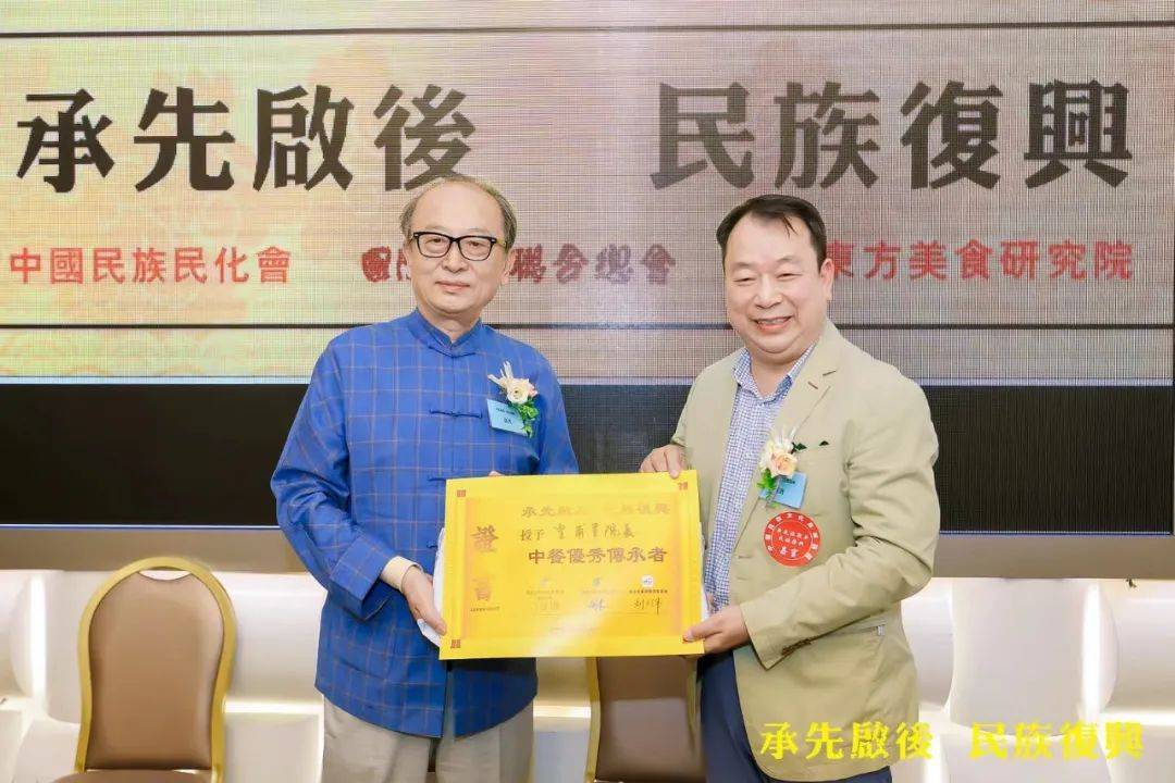 刘广伟先生为香港厨艺学院院长皇甫星颁发“中餐优秀者“证书