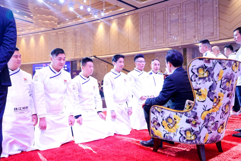 本次盛会,王伟先生还举行了收徒仪式。经过严格的筛选,来自全国各地的三十名德艺俱佳的年轻厨师,加入到王伟先生门下。王伟先生长期致力于弘扬中国烹饪文化,推动餐饮文化事业的发展,广泛开展技术传播,力求做到承上启下的作用,为培养新人做出了杰出的贡献。王氏三代传人,致力于淮扬梅府菜制作,从创造到制造,从制造到传承,一代代保持着优良作风。王伟先生属于第三代传人,始终遵循师父的遗训,用心做人,用心育人,这次再次开门收徒,旨在将梅府菜发扬光大,千古流传。