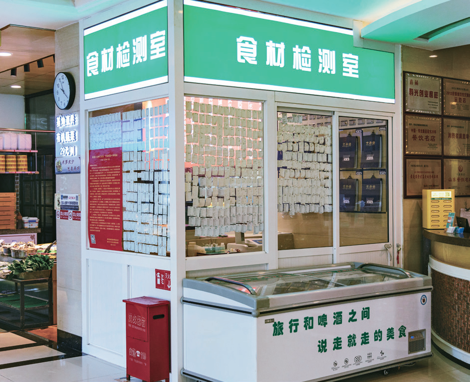 2010 年,京都涉猎学校食堂,为了保证学生们吃上安全放心的饭菜,京都花重金购置了检测设备,对所采购的原材料进行检测,开设了第一家检测室。后来,随着企业不断发展壮大,餐厅门店越建越多,会员也越来越多,李杰给每个有条件的大店都建设了检测室。目前,京都有 7 个食材检测室,设备都是市场监管局推荐的过硬设备,包含检测农残的、重金属的、海鲜的、瘦肉精的各类设备。现在还在积极引进检测核辐射的设备,加强对海鲜类食材的检测力度。