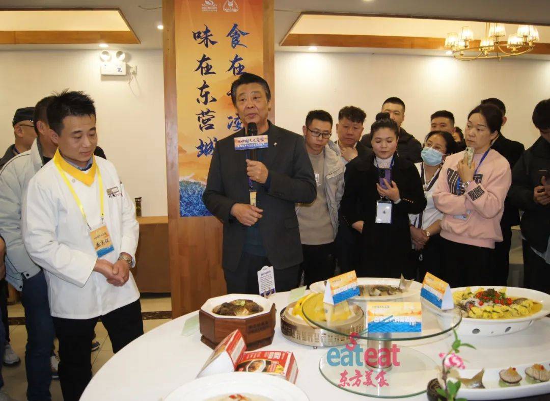 ▲国家餐饮业一级评委、东营烹饪协会技术专家委员会主任 魏正涛 现场点评开凌梭菜品