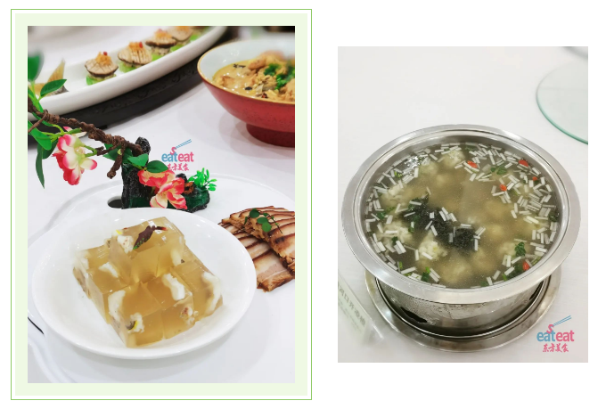▲ 水晶梭鱼冻(左) 原汁香椿梭鱼丸 (右)