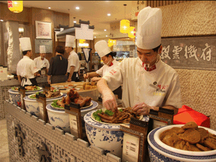 徽州生态食材丰富,徽菜的烹调方式是擅长烧、炖、蒸,这就决定了菜品滋味浓郁,烹调过程锅气十足,吸引食客眼球,烹饪过程自带吸客属性,非常适合明档呈现。