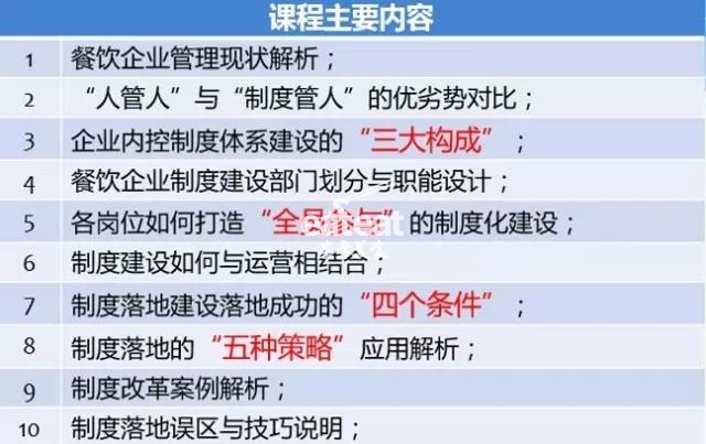 不会编制制度、不会使用制度、制度遭到排斥、制度不能落地及落地不能升级等诸多问题,课程内容如下: