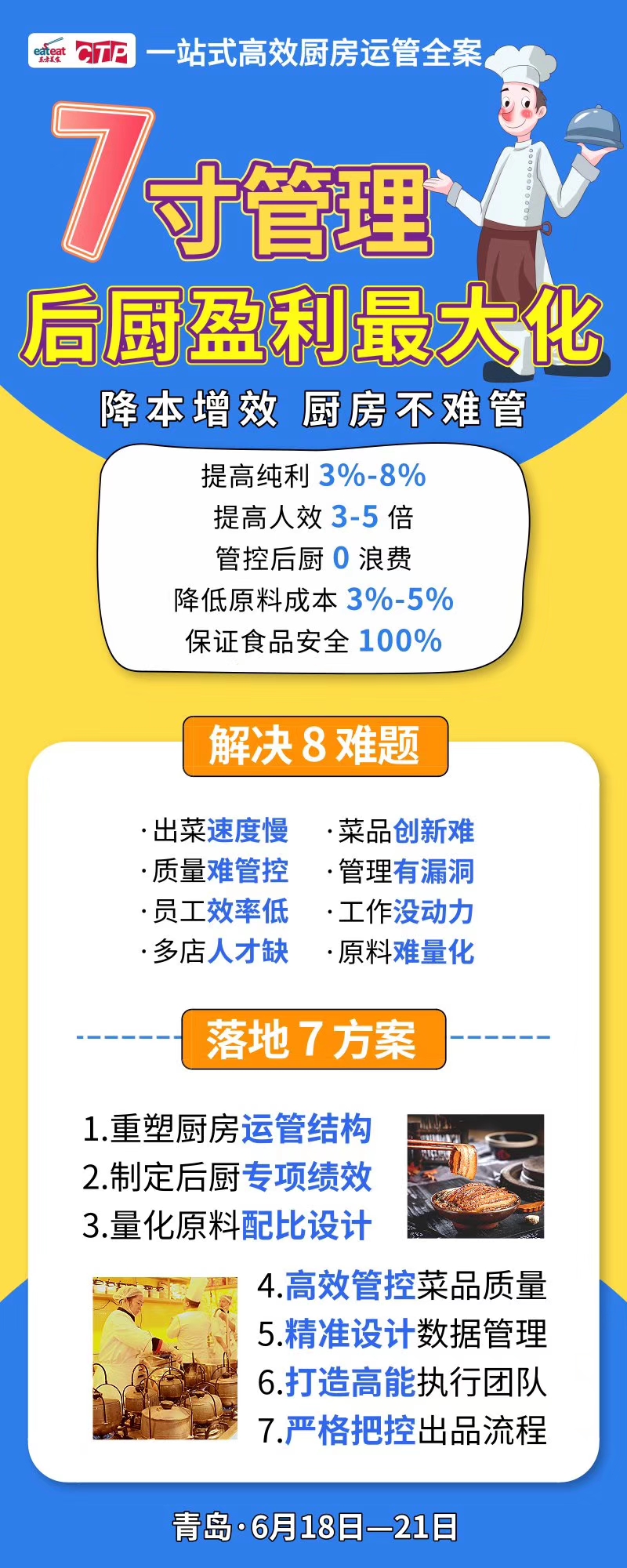 本期课程将利用成本数据管控、操作流程标准数据设计等方法,提高3%-8%的毛利,同时提高5倍出菜速度,让成本最大限度减少。