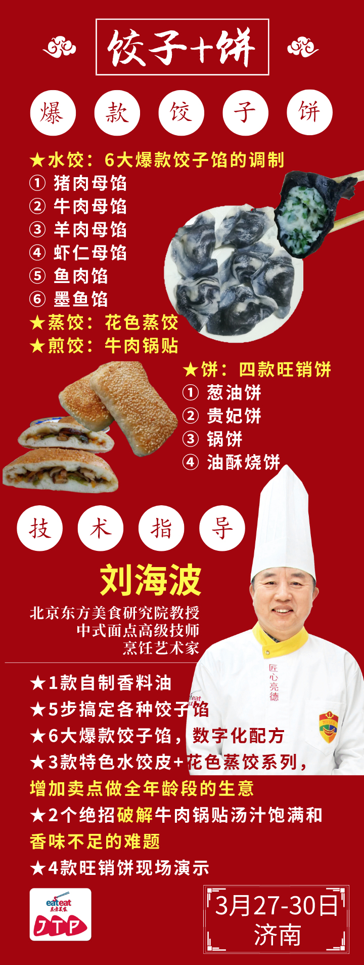 JTP(技能提升培训),是北京东方美食研究院专家团队专为厨师学爆款、老板探寻创业项目打造的精品教育品牌。15年来,它已成为大家公认的爆款学习品牌,开班260余次,服务2万余人,帮助千家餐企成长。JTP关注爆款,讲师来自烹饪艺术家和知名餐厅品牌的厨艺总监;JTP数字教学、配方全公开;学员实操,包教包会。