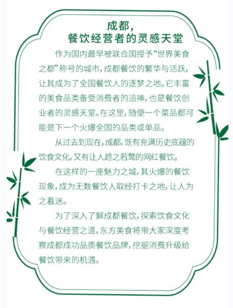 作为国内最早被联合国授予“世界美食之都”称号的城市,成都餐饮的繁华与活跃,让其成为了全国餐饮人的逐梦之地。它丰富的美食品类备受消费者的追捧,也是餐饮创业者的灵感天堂。在这里,随便一个菜品都可能是下一个火爆全国的品类或单品。