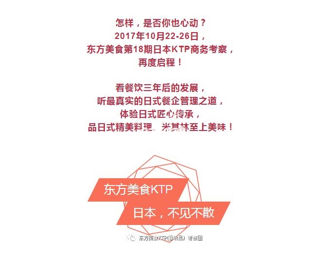 日本KTP五天纯商务考察,为你剖析强大日本餐企背后的经营之道。
