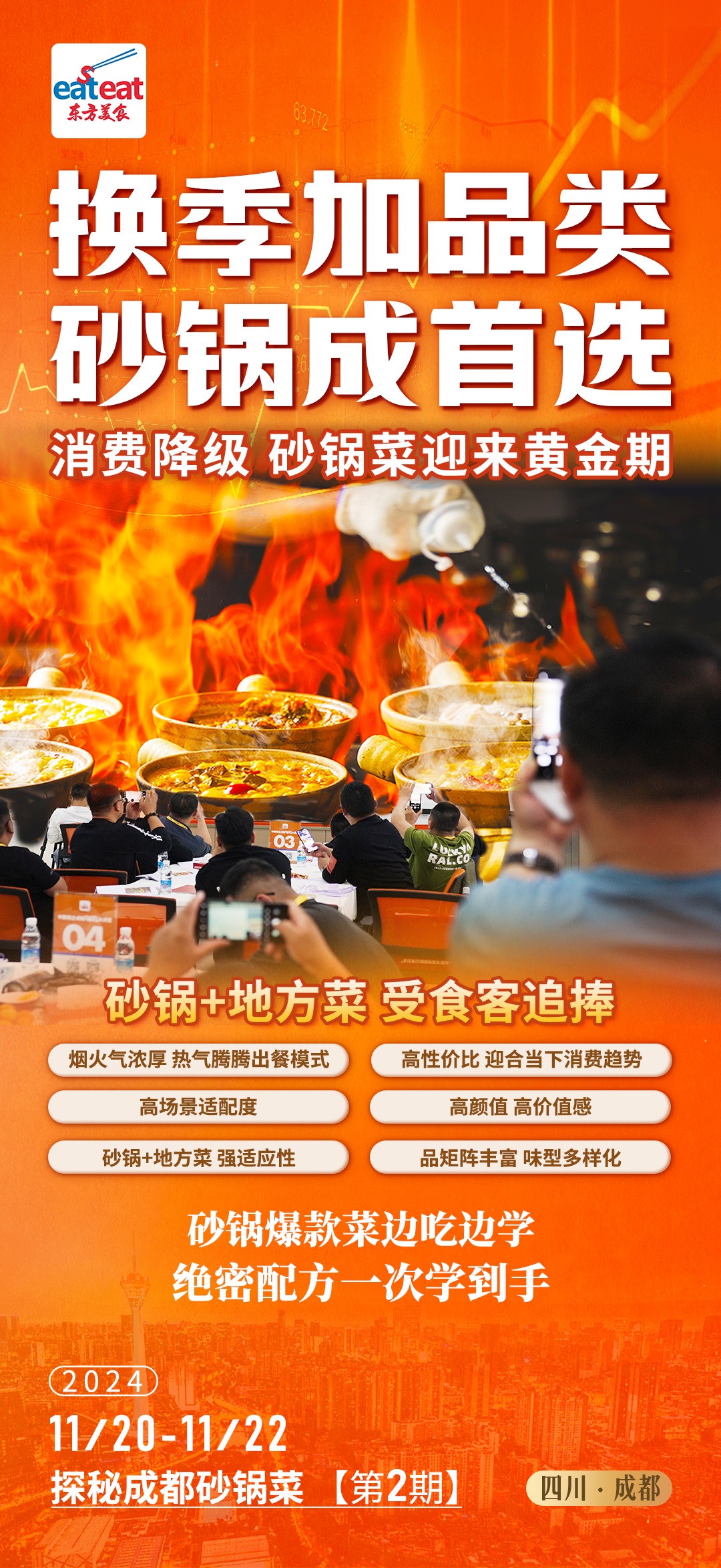 2024 年 11 月 20 - 22 日,【探秘成都砂锅菜】第 2 期,还有少量名额,就在烟火成都。 绝密配方一次学到手,快来报名吧