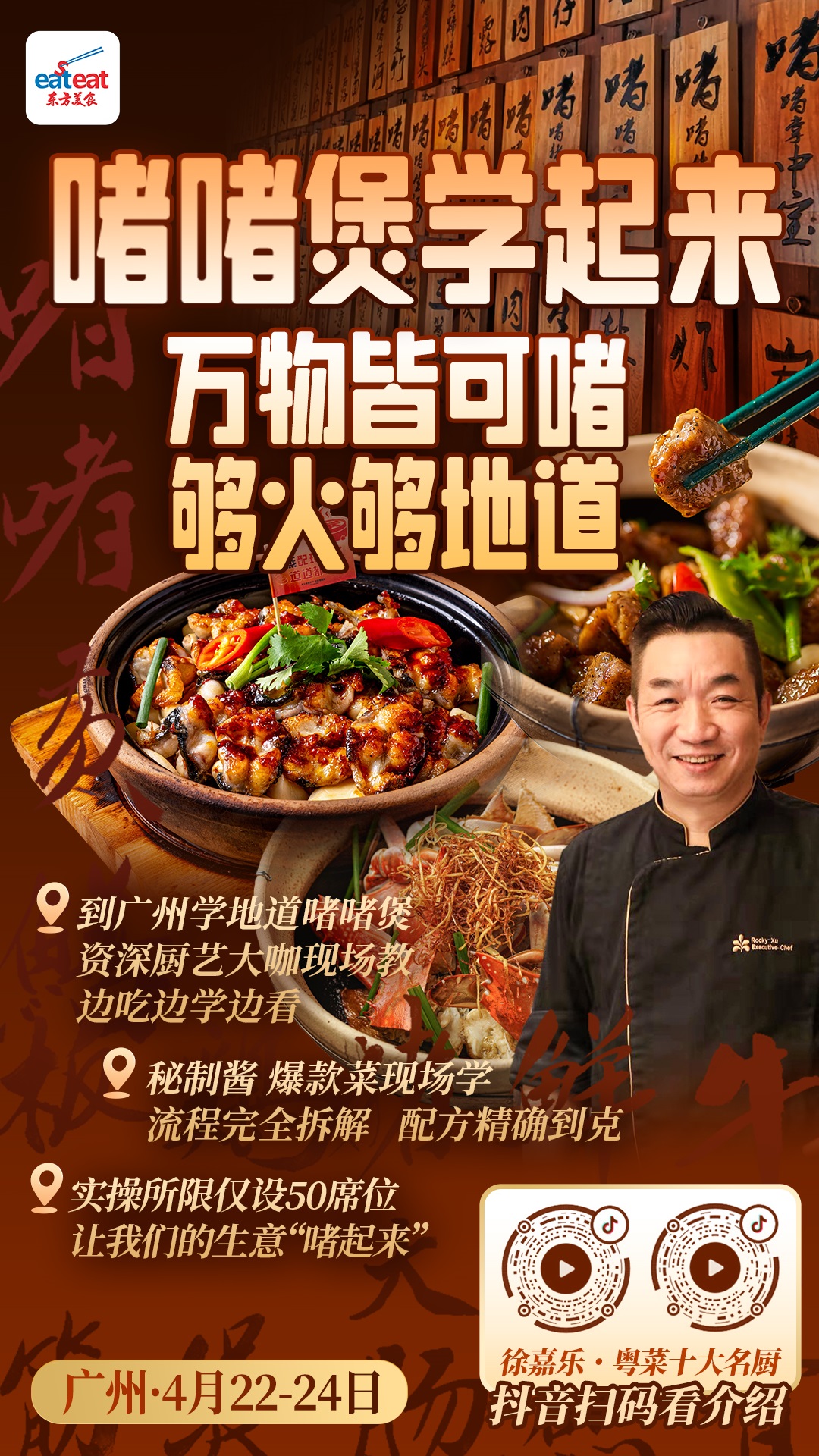粤菜十大名厨徐嘉乐现场教学,边吃边学边看,啫啫煲难题现场拆解,配方精确到克。