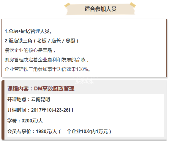 一线厨政实战高管,香港企业从业十多年,深受香港企业高效管理文化熏陶,课程的3大特点:
