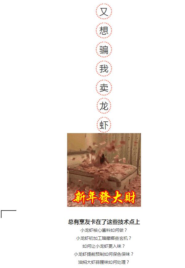 15款旺销潜江流派小龙虾培训技术(油焖大虾、蒜蓉龙虾等...)