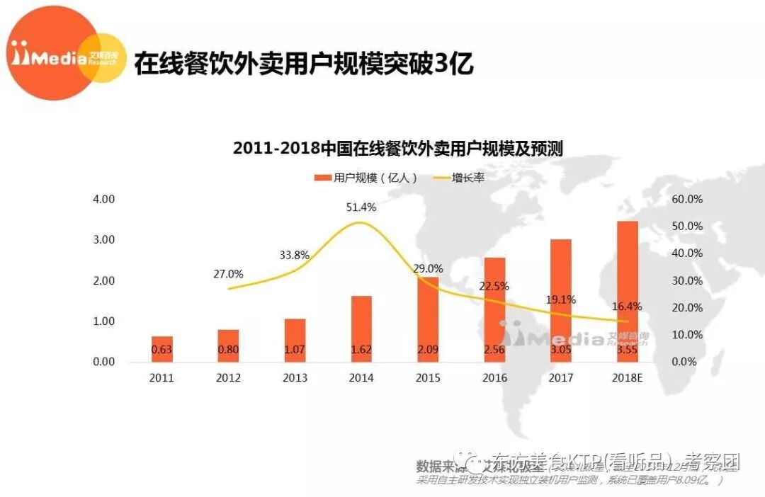 市场规模的扩大就意味着消费者数量的剧增,2017年我国外卖使用人数已经正式突破3亿大关。