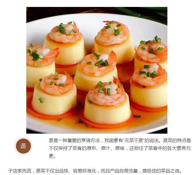 蒸是一种重要的烹调方法,我国素有“无菜不蒸”的说法。蒸菜的特点是不仅保持了菜肴的原形、原汁、原味,还锁住了菜肴中的各大营养元素。