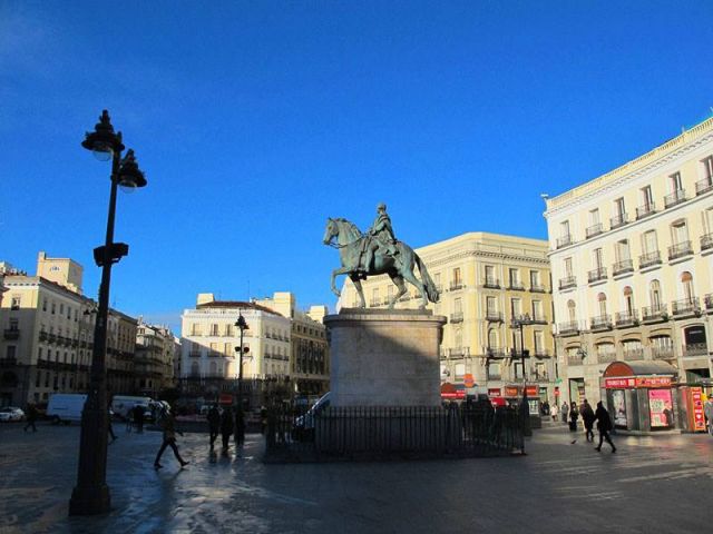 这里是马德里最繁华的商业区。太阳门广场是伊比利亚半岛的正中心标志;漫步位于太阳门西侧的马德里主广场——马约尔广场,并在腓力三世像前合影留念。