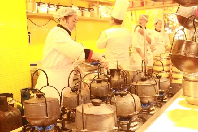 除了档口,操作人员也是明档设计中至关重要的一环。不仅誓要保持整洁,更要学会“作秀”,把菜品制作的优点亮点完完全全的展现出来。让厨师成为“演员”,让菜品成为“推销员”。这种功夫同以往后厨的闷头做菜大不相同,如何既把菜做好,又把过程做“亮”,还需要对操作人员的进一步培训。